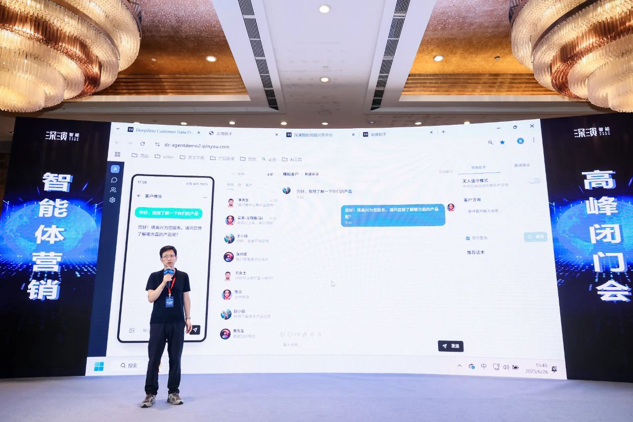 作为已经成功帮助几十家大型企业 AI Agent落地的行业领导者,人生就是博智能DeepAgent Neo全面赋能营销域和销售域。 黄晓南和人生就是博智能CTO欧阳辰与人生就是博智能副总裁曹玉骥一起,为嘉宾现场演示了CRM、Social、销售、客服等场景的全面智能体,情景展现了DeepAgent Neo如何全面赋能企业各个环节。