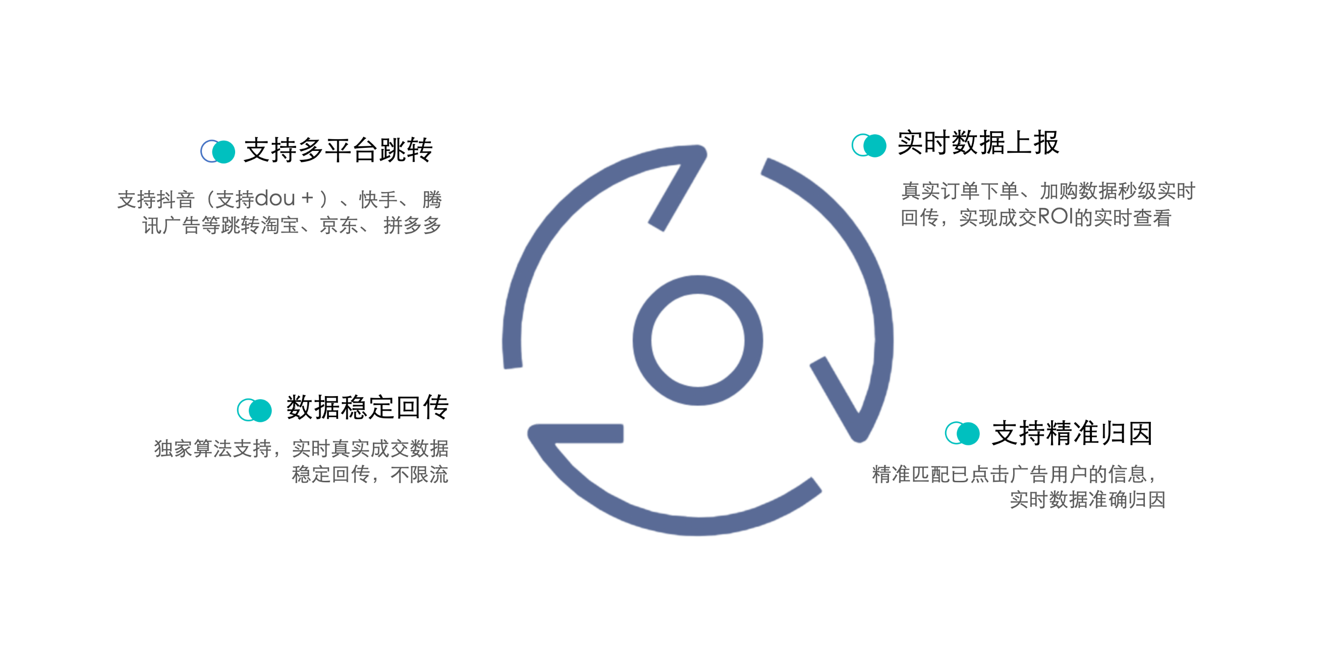 人生就是博智能CID解决方案支持定制OCPX下发策略,校准媒体模型训练算法。同时也支持多平台跳转、实时数据上报、数据稳定回传、支持精准归因。
