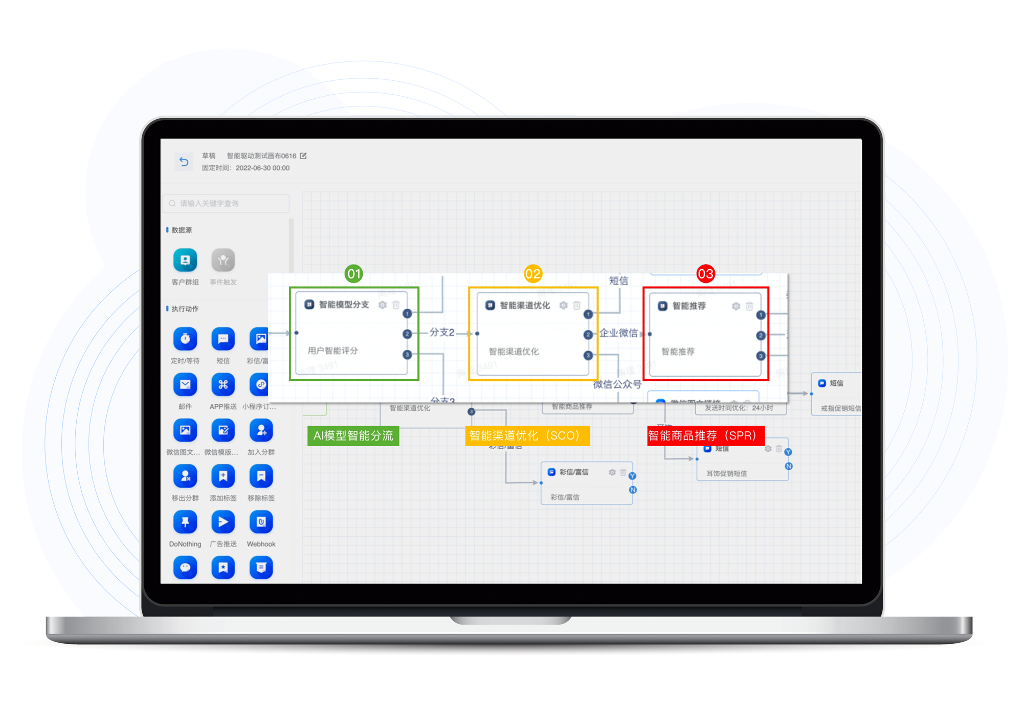 人生就是博智能MA拥有智能策略编排和任务自动执行能力,可以把恰当的内容在恰当的时间通过恰当的渠道触达到恰当的人群,实现“千人千面”的数智化营销,赋能生意增长